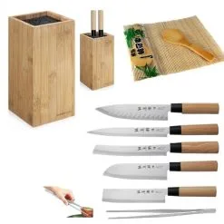 Ceppo Oriente: Ceppo Completo Di 5 Coltelli Serie Classic + Sushi Set+ Pinza