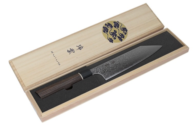 Coltello damasco Santoku serie Zuiun di Kanetsugu è un modello speciale realizzato per celebrare il centenario dell’azienda.